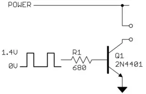 In your application the output is the 5V-level output (0 or 5V depending on low/high status) and M1 could be a common small-signal N-channel enhancement mode MOSFET transistor, the 2N7000 in TO-92 plastic through-hole, and SMT packaging.