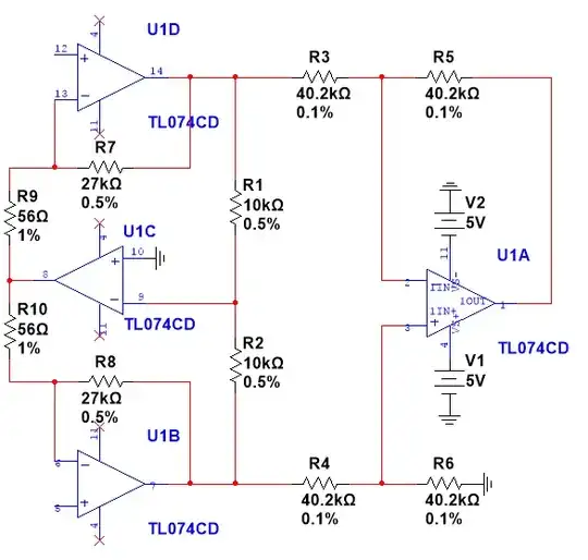 Note: CMRR is the value for the differential amplifier considering the effects of U1B, U1C and U1D.