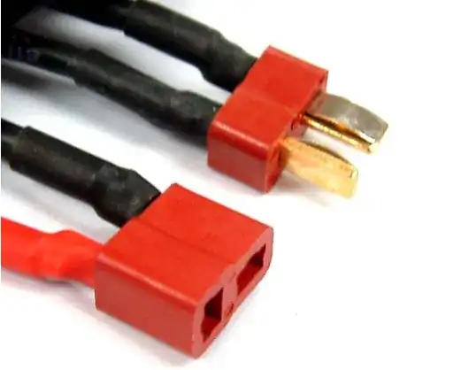 I'm making a safety disconnect for an experimental RC craft. It will be tethered to the ground, and if it goes out of control the tether will pull a plug disconnecting the power. I will make the plug from a male Deans connector (pictured below) looped to connect the positive and negative terminals. The female connector will be in line with the battery.