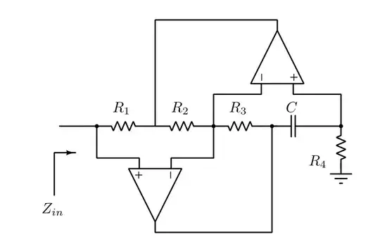 \$Z_{in}(s)=R_0\frac{1+\frac{s}{\omega_z}}{1+\frac{s}{\omega_p}}\$ if we now neglect the high-frequency pole, we have: \$Z_{in}(s)\approx R_0(1+\frac{s}{\omega_z})\$. The impedance of an inductor affected by ohmic loss is defined as: \$Z_L(s)=r_L+sL=r_L(1+s\frac{L}{r_L})=r_L(1+\frac{s}{\omega_z})\$. From there, we can determine the equivalent inductance value brought by the GIC circuit: \$L_{eq}=\frac{R_0}{\omega_z}\$. The Mathcad sheet is shown below: