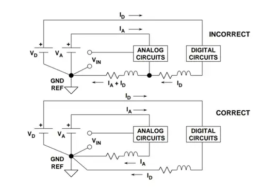 But how to split the ground at the LDO? It has only one GND pin. If I give it PGND do my 12v powered device perform perfectly by having the GND of Nucleo board?