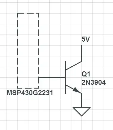 I am trying to use a pin on my msp430 microcontroller I have as a replacement for a pushbutton on a device. The msp430 is 3.3v and the device I am switching is 5 volts. I was under the impression I could use a 2n3904 transistor in place of the button by applying current by turning on the pin on the msp430 which would let current go from the collector to the emmiter, and hopefully "push" the button.