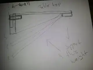 - $P$ is the weight on the table top, applied at the edge furthest from the wall