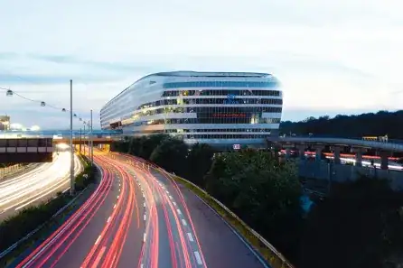 The most notable building is the Square at the Frankfurt airport which is above the railway station and houses a Hilton.