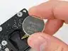 • Use the flat end of a spudger to pry the PRAM battery (type CR2032) out of its housing on the logic board.