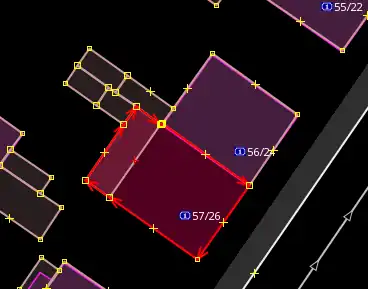 Jestliže nad vrstvou Český RÚIAN budovy vidíme již zakreslenou budovu která je hodně podobné velikosti ale jiného/stejného tvaru, zkontrolujeme nejdříve zda již zakreslený tvar není stejný jako ten na ortofotu. Pokud ne a tvar na ortofotu se podobá tomu z vrstvy Český RÚIAN budovy, klikneme s puštěným tracerem do již zakreslené budovy a ta se automaticky přetrasuje.