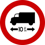 Απαγορεύεται η οδήγηση οχήματος σε απόσταση μικρότερη των (π.χ. 70) μέτρων από του προηγούμενου. | mindistance=... (π.χ. 70)