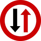 Προτεραιότητα, έναντι της επερχόμενης κυκλοφορίας (λόγω στενότητας οδοστρώματος) | |