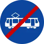 Τέλος αποκλειστικής διέλευσης τροχιοδρόμου | Δεν υπάρχει ετικέτα, καθώς η παρούσα πινακίδα αποτελεί τέλος του περιορισμού |