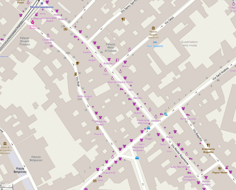 - English : The stylish shopping boutiques of Via Monte Napoleone, Milan, now mapped out in lots of detail thanks to user:Alecs01