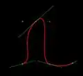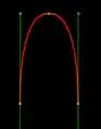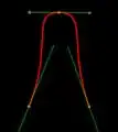 Green lines are tangents with control points at ends, red line is the resulting spline: