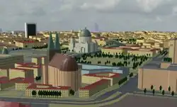 OSM2World (osm2world.org) is an application that converts OpenStreetMap data to three-dimensional models. The models can be exported to different formats.
