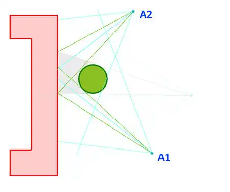 | Ein Teil der Fassade ist auf dem Foto vom Standort A durch ein Baum verdeckt | Zwei weitere Bilder vom Standort A1 und A2 liefern fehlende Fassadeninformation |