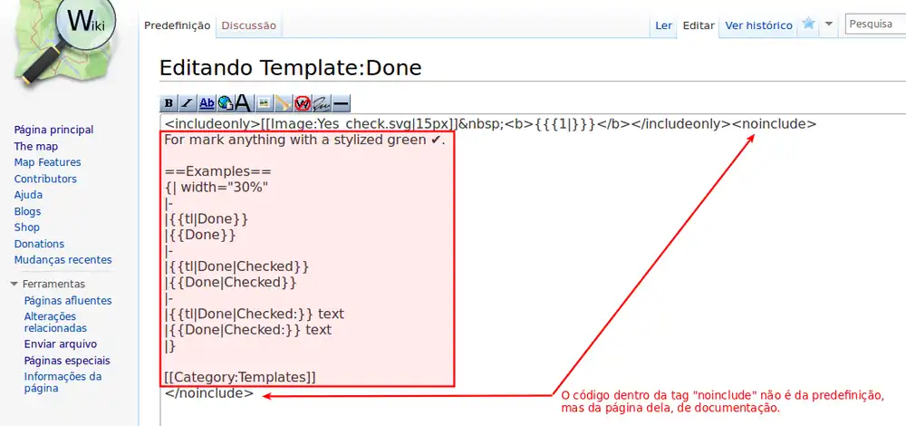 - Category:Templates: lista de templates disponíveis (detalhe: o template só aparece na lista se tiver a referência a esta categoria)