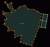 - Сжать границу населённого пункта, чтобы она вписывалась в административную единицу. Проверить спутниковый снимок: если видно, что пункт стоит прямо совсем на краю, превратить его границу в мультиполигон и приклеить к административной границе.