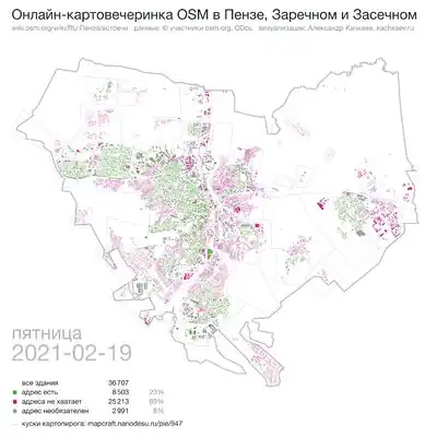 Список некоторых участников ОСМ, помогающих по Пензе, находится тут: Category: Users in Penza. Чтобы добавить себя в этот перечень, скопируйте текст [[Category:Users in Penza|%USERNAME%]] на свою личную вики-страничку и замените %USERNAME% на свой ник.