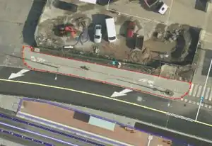 | Traffic calming paving on a street edge (This element should be treaten as kind of a traffic calming area, not footway) |