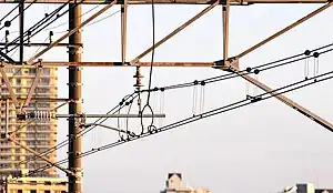 overhead contact lines with catenary suspension, consisting of one (or two) supporting catenary wires located above the contact wire(s) | ||
