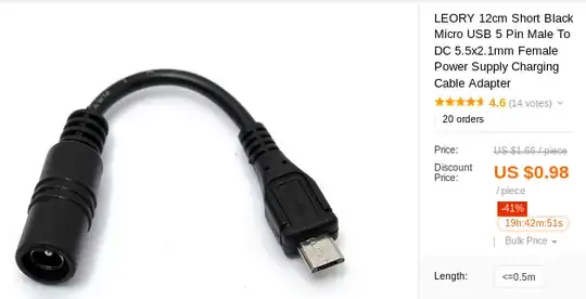 Micro USB 5 Pin Male To DC 5.5x2.1mm Female Power Supply Charging Cable Adapter