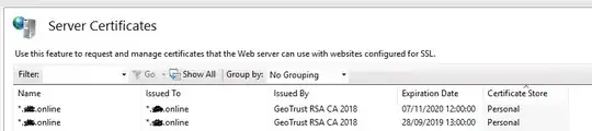 As you can see from screenshot, both certificates are imported ok but how best to apply the new one to the existing sites automatically? Is there a quick and reliable way to upgrade an inuse PFX certificate with a new PFX file?