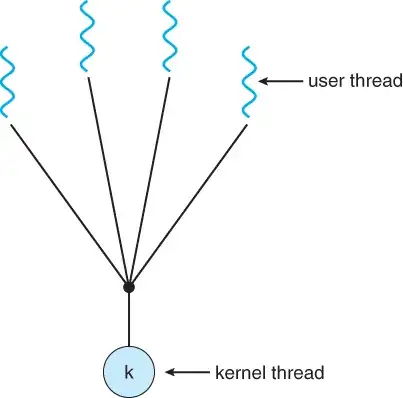 My question is why concurrency is not gained in many-to-one model and why one-to-one model provides more concurrency than many-to-one model.