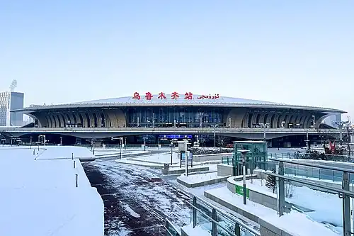 Ürümqi railway station (Chinese: 乌鲁木齐站; Uyghur: ئۈرۈمچی ۋوگزالى, romanizedÜrümchi békiti) is a railway station and a major transport hub for high-speed and conventional rail in Ürümqi, Xinjiang. The station was a small halt called Ergong before renovation.