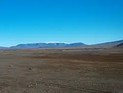 Þórisjökull or Thórisjökull (Icelandic pronunciation: [ˈθouːrɪsˌjœːkʏtl̥] , Icelandic for "Thóris's glacier") is a small glacier and volcano in western-central Iceland, to the southwest of Langjökull glacier. It has an elevation of 1,350 metres (4,430 ft). Kaldidalur lies in the foreground.