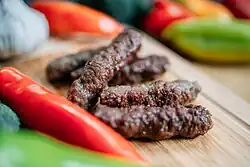 Before the 1930s, they spread to the rest of Yugoslavia, including east of Serbia and the Macedonia region.[9] By 1932, ćevapčići were regarded a local specialty in southern Serbia, Skopje and Peja.[12] In 1933, the first street food vendor appeared in Maribor, Slovenia, who came from Leskovac, and served grilled meat, including ćevapčići.[13] In 1940, ten pieces cost one Yugoslav dinar.[14] In the second half of the 20th century, ćevapčići and other Oriental dishes became prominent in Croatian cuisine.[15] The Leskovac-styled grilled meat, including ćevapčići, have today become part of everyday-diet in Slovenia.[16] Today, ćevapčići are found outside former Yugoslavia in the diaspora communities.