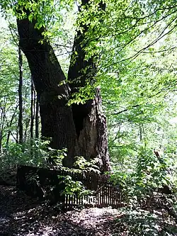 The forested areas of the reserve are dominated by old-growth stands with a two-story structure, giving it a specific character reminiscent of the interior of a primeval forest.[6] 64% of the forests in the reserve consist of stands over 100 years old. Among them, noteworthy are specimens of pedunculate oaks of considerable size, estimated to be between 330 and 400 years old.[6]