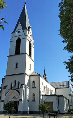 Already on September 2–3, 1939, in the beginning of the German invasion of Poland and World War II, German troops committed massacres of Poles in Łaziska Górne, Łaziska Dolne and Łaziska Średnie, killing 26, 17 and 19 people, respectively (see Nazi crimes against the Polish nation).[6] On September 6, 1939, the Freikorps murdered seven more Poles in Łaziska Górne.[6] Among the victims of the massacres were former insurgents of the Silesian Uprisings, activists, miners, craftsmen, workers, a teacher, local official, farmer, and also teenagers and women.[6] The town was then occupied by Germany until 1945. Seven Polish policemen who were either born or served in Łaziska were murdered by the Russians in Tver in April–May 1940 during the large Katyn massacre.[7] The Germans established and operated a forced labour camp for Jews in Łaziska Górne,[8] and the E393 forced labour subcamp of the Stalag VIII-B/344 prisoner-of-war camp in Łaziska Średnie.[9]