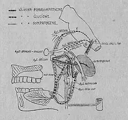 Diagram of innervation of parotid gland used in Łucja Frey's description of "her" syndrome