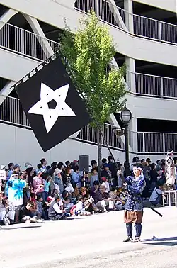 Standard-bearer at the 2006 Aizu Parade bearing the flag of the Ōuetsu Reppan Dōmei | |