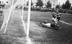 In 1934, after beating WKS Grodno (12–0 and 6–0) and WKS Brześć nad Bugiem (3–1 and 6–0), Śmigły reached the final group of the play-offs, winner of which was promoted to the Polish Soccer League. This attempt was unsuccessful – in the 3-team group Śmigły finished last, behind Śląsk Świętochłowice (which was promoted) and Naprzód Lipiny.