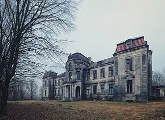 Śviatapołk-Čaćviarcinski Manor (Belarusian: Палацава-паркавы комплекс Святаполк-Чацвярцінскіх was a palace built by Liudwig Sviatopolk-Chetvertynsky near Zhaludok, Belarus. Complex includes a brick palace, an outbuilding, the remains of a former mill, a smithy and other outbuildings, which are connected by a network of mutually perpendicular alleys of the regular park. Now the palace is abandoned.[3]