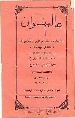 İsmail Gaspıralı founded the magazine Alem-i Nisvan ("Women's World") in 1906 after realizing that Terciman was inadequate in matters of improving the low social status of women in Russia, women's education and employment. Şefiqa was appointed head of the magazine. Published articles informed, directed, encouraged and organized Turkic women, giving detailed information on women and women's movements in the Turkish and Islamic world.[2]