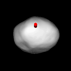 Animation of a Psyche shape model viewed from 20° south latitude. The red peg is at 0° longitude.