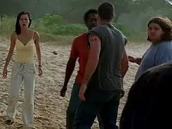![]() Jack tries to diffuse a conflict between Michael and Jin after he accuses Jin of burning a raft that Michael was constructing in an to attempt to leave the island | |