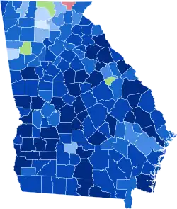 2. ^ Because the Progressive slate finished second behind Wilson in Georgia as a whole, all margins given are Wilson vote minus Progressive vote and percentage margins Wilson percentage minus Progressive percentage unless stated otherwise for the county in question.