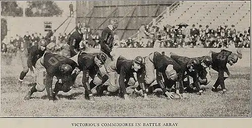 The 1922 Vanderbilt Commodores football team represented Vanderbilt University during the 1922 Southern Conference football season. During the season, Dan McGugin's 18th as head coach,[n 1] Vanderbilt compiled a record of 8–0–1 (5–0 in conference games)[n 2] and outscored its opponents 177 to 16. The Commodores' defense was unrivaled in the South, leading the nation in giving up just 1.8 points per game, none of them at home. The season included a tie with Michigan at the dedication of the new Dudley Field; the first stadium in the South to be used exclusively for college football. The season was immediately dubbed one of the best in Vanderbilt and Southern football history.[3][4]