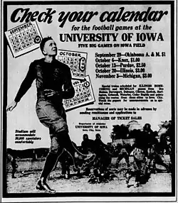 1. ^ "1923 Iowa Hawkeyes Schedule and Results". SR/College Football. Sports Reference LLC. Retrieved May 11, 2025.