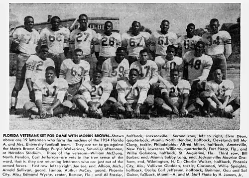 - ^ "Florida A&M Gets 14-7 Scare". Tallahassee Democrat. November 7, 1954. p. 18 – via Newspapers.com.