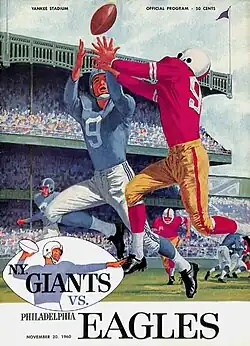 Program for the November 20 game against the Philadelphia Eagles. In this game Giants star Frank Gifford suffered a season-ending concussion at the hands of linebacker Chuck Bednarik.
