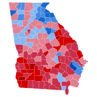 This election was the first time since 1836 that a Democrat would win the presidency without carrying Georgia. Georgia was also one of three states that voted with a certain party for the first time in this election, the other two being Alaska and Vermont, both of which voted for a Democratic presidential candidate for the first time. Georgia was one of five states that swung more Republican in 1964, alongside Louisiana, Mississippi, Alabama, and South Carolina.[3][4]