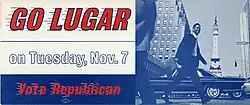 A former member of the Indianapolis School Board,[4] earlier that year Lugar had unsuccessfully sought to become President of the but lost by a vote of four to three.[1] Lugar was also the former head of Community Action Against Poverty and an executive at Thomas I. Green & Co.[4] After this, he was convinced by L. Keith Bulen, the chair of the Marion County Republican Committee, to run for mayor.[1] Lugar was also supported by the Republican Action Committee, a group of young Republicans that had organized after the party's losses in the 1964 election cycle in order to challenge control of the party from the party establishment.[4]