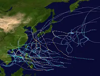 27 tropical depressions formed this year in the Western Pacific, of which 24 became tropical storms. 12 storms reached typhoon intensity, of which 7 reached super typhoon strength.