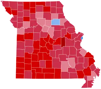 Nixon carried Missouri with 62.29% of the vote to McGovern's 37.71%, a victory margin of 24.58%, becoming the first Republican to ever carry Missouri more than once. Nixon won all but two jurisdictions: Monroe County and St. Louis City.