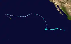 3. ^ a b c d e f g h i j k l m n o p q r s t u v w x y z aa ab ac ad ae af National Hurricane Center; Hurricane Research Division; Central Pacific Hurricane Center (April 26, 2024). "The Northeast and North Central Pacific hurricane database 1949–2023". United States National Oceanic and Atmospheric Administration's National Weather Service. Archived from the original on May 29, 2024. A guide on how to read the database is available here. Public Domain This article incorporates text from this source, which is in the public domain.