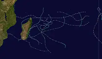 Johanne existed from March 1 to March 11. On March 6, Tropical Storm Johanne passed between Réunion and Mauritius while passing southeastward, with respective island rainfall totals of 316 and 260 mm (12.4 and 10.2 in). The highest wind gust was 124 km/h (77 mph) at Mon Desert Alma on Mauritius.[10]