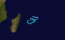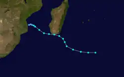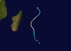 Formed on November 24 over the open Indian Ocean it moved in a mostly southwest direction, though it did curve a few times. It reached a peak intensity of 80 knots (92 mph; 150 km/h) and a pressure of 965 hectopascals (28.50 inHg) on November 29. Christelle made landfall on Madagascar on December 9 as a tropical depression.