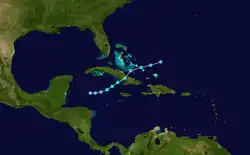 | Katrina | November 3 – November 7 | Category 1 hurricane | 85 mph (137 km/h) | 980 hPa (28.94 inHg) | Cayman Islands, Jamaica, Cuba, Bahamas, Turks and Caicos Islands | Minimal | 2 | [21] |